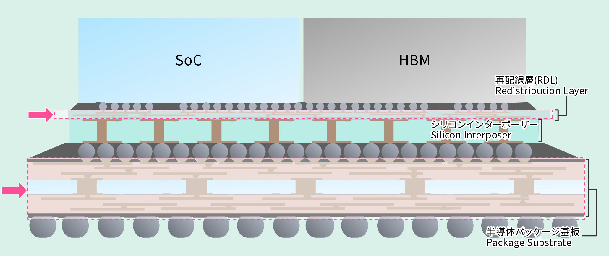 - 埋込配線のため、パッケージ基板・再配線層(RDL)の電気的な特性や信頼性の向上が見込まれる